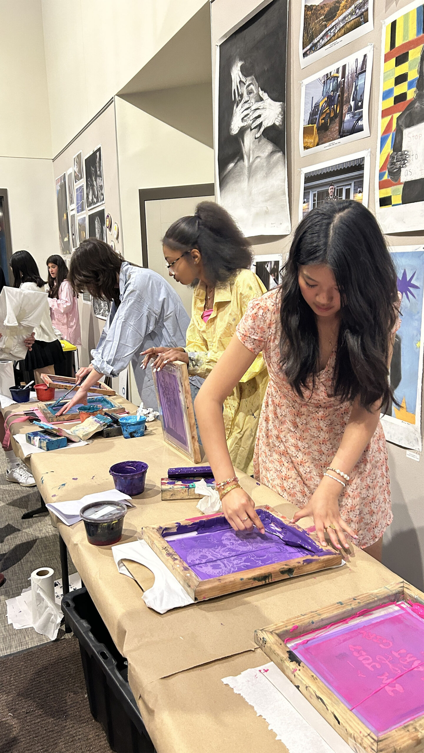 Student arts group Arts with a Social Conscience screenprinting shirts for Arts Night