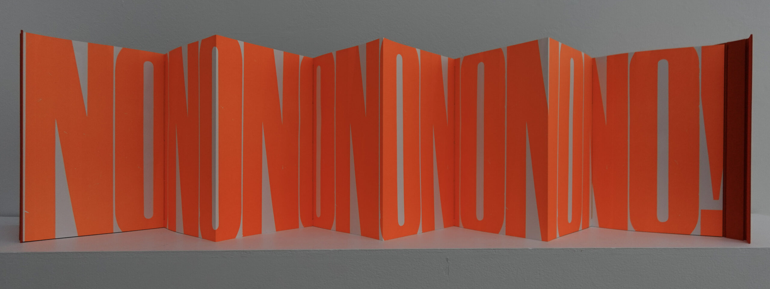 A Monument to What Remains commemorates the overlooked moments and everyday experiences that often go unrecognized or forgotten, raising questions about what is deemed worthy of remembrance—and who gets to make that decision. The project consists of six accordion books, each featuring a phrase on both sides. Readers can engage with each book individually or connect them into a sculptural form measuring 24 inches tall by 91 inches wide, using custom acrylic disks. The reader has the freedom to decide the order in which the phrases are assembled, making each version of the monument a unique act of personal and collective memory. Through this interactive structure, the work invites reflection on how history is shaped, assembled, and preserved.