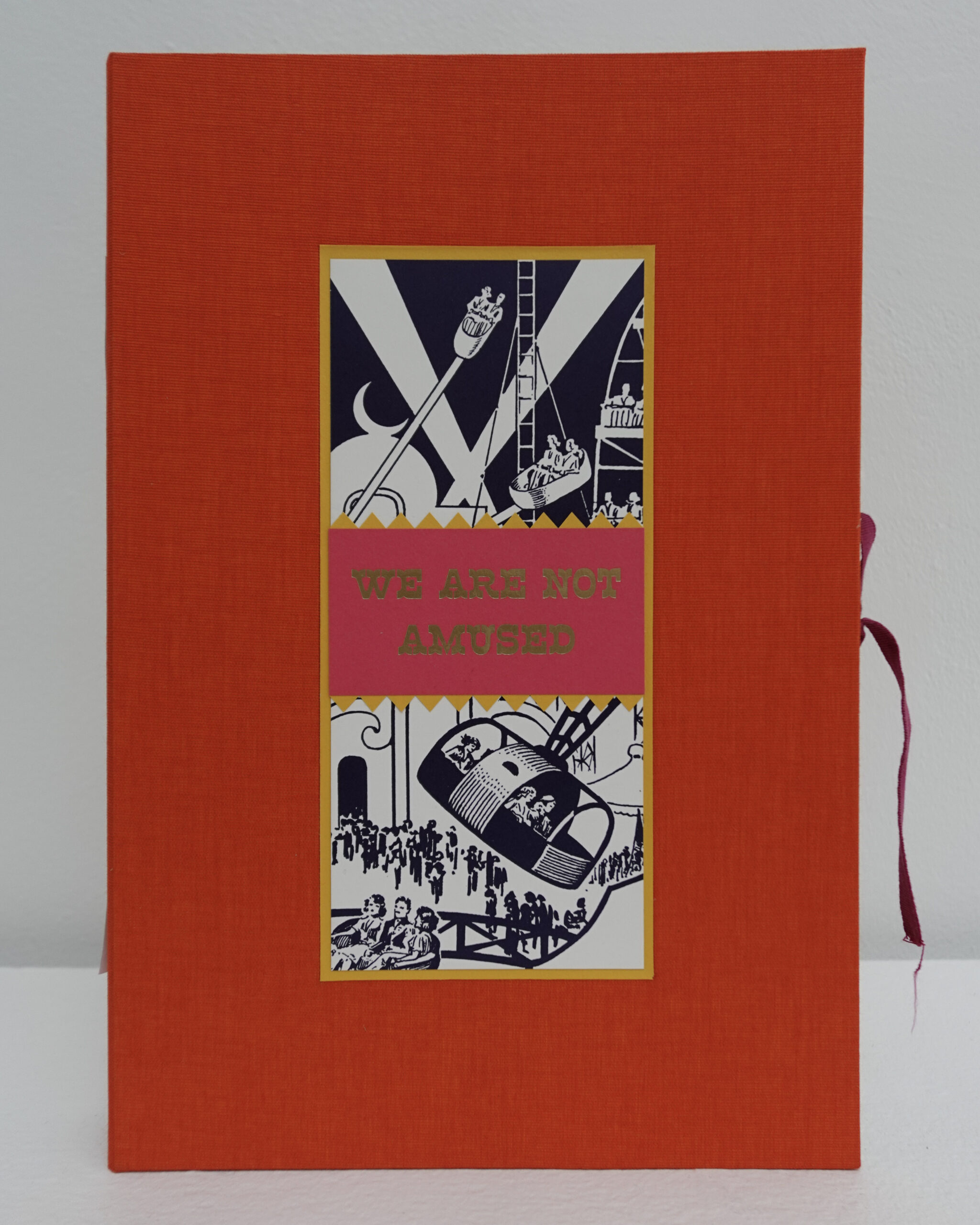 We Are Not Amused was designed and written by Julie Chen. It was printed in the summer of 2025 using historical magnesium and wood blocks from the Enquirer Collection at the Hamilton Wood Type & Printing Museum. Selected blocks, primarily from the Circus and Amusement Park sections, feature depictions of women and were intentionally chosen to juxtapose early-to-mid 20th-century gender norms with contemporary female experiences.